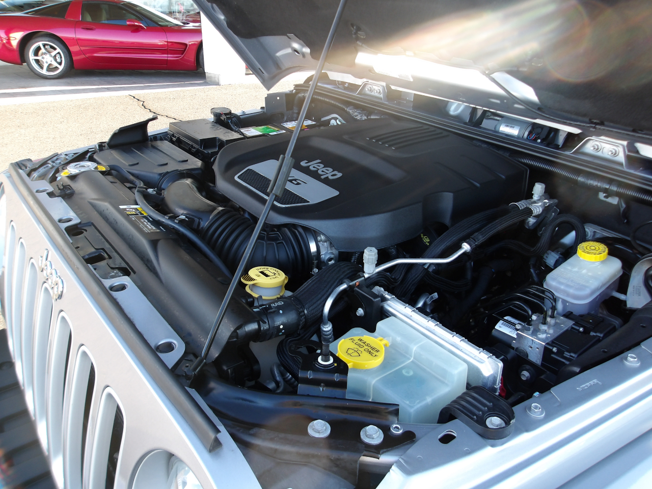 Equipped with a manual transfer case and a towing package, this Jeep is ready for any challenge you throw at it. And let's not forget the stylish details - black door handles, body-colored fender flares, and black power heated side mirrors add a touch of modern flair to this rugged vehicle.