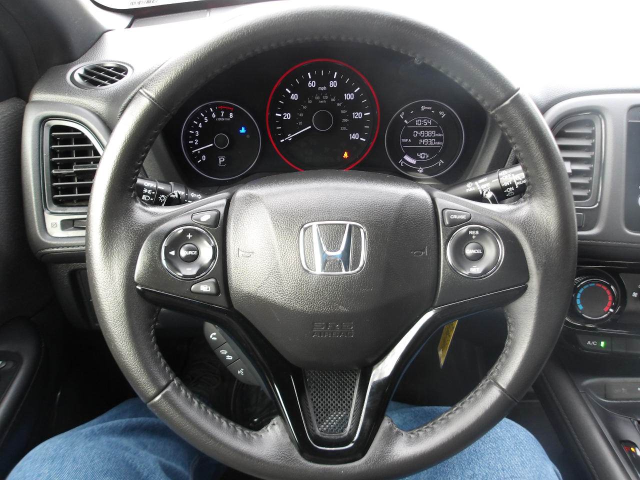 Hop inside and you'll find a comfortable interior complete with a leather-wrapped steering wheel, manual air conditioning, and a 60/40 folding rear seat for added storage space. The HR-V also features a rearview camera for easy parking and dual-stage front airbags for added safety on the road.