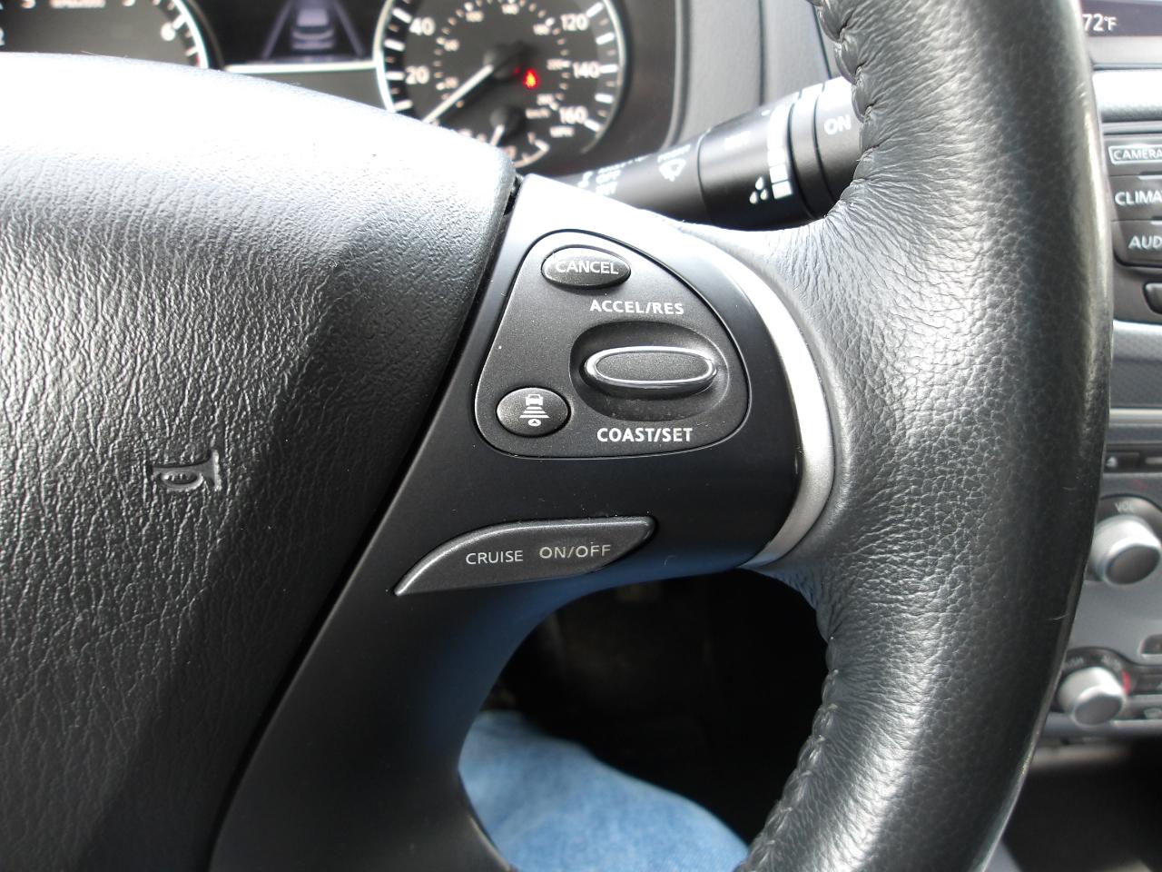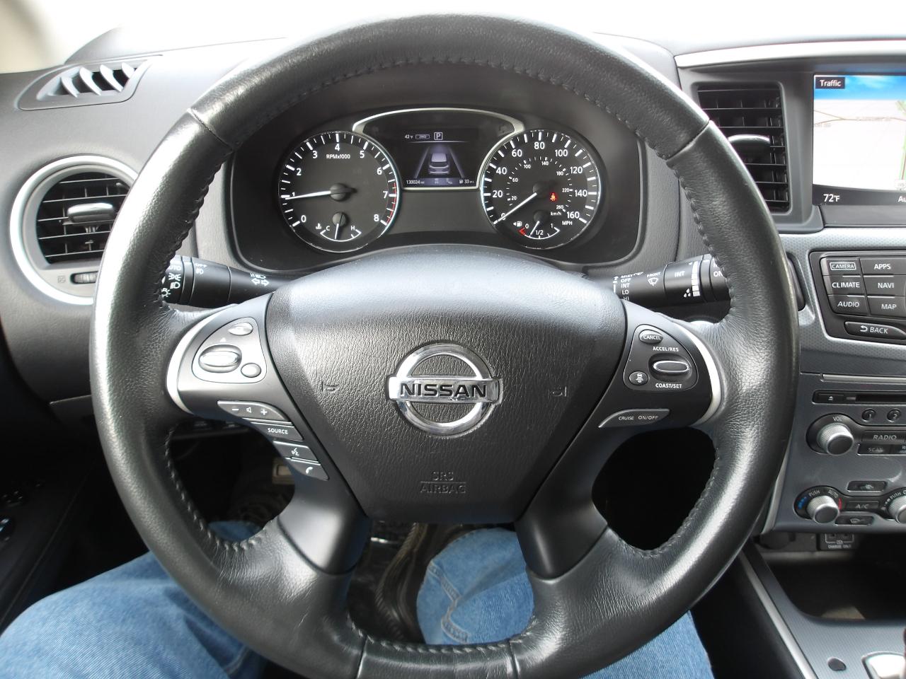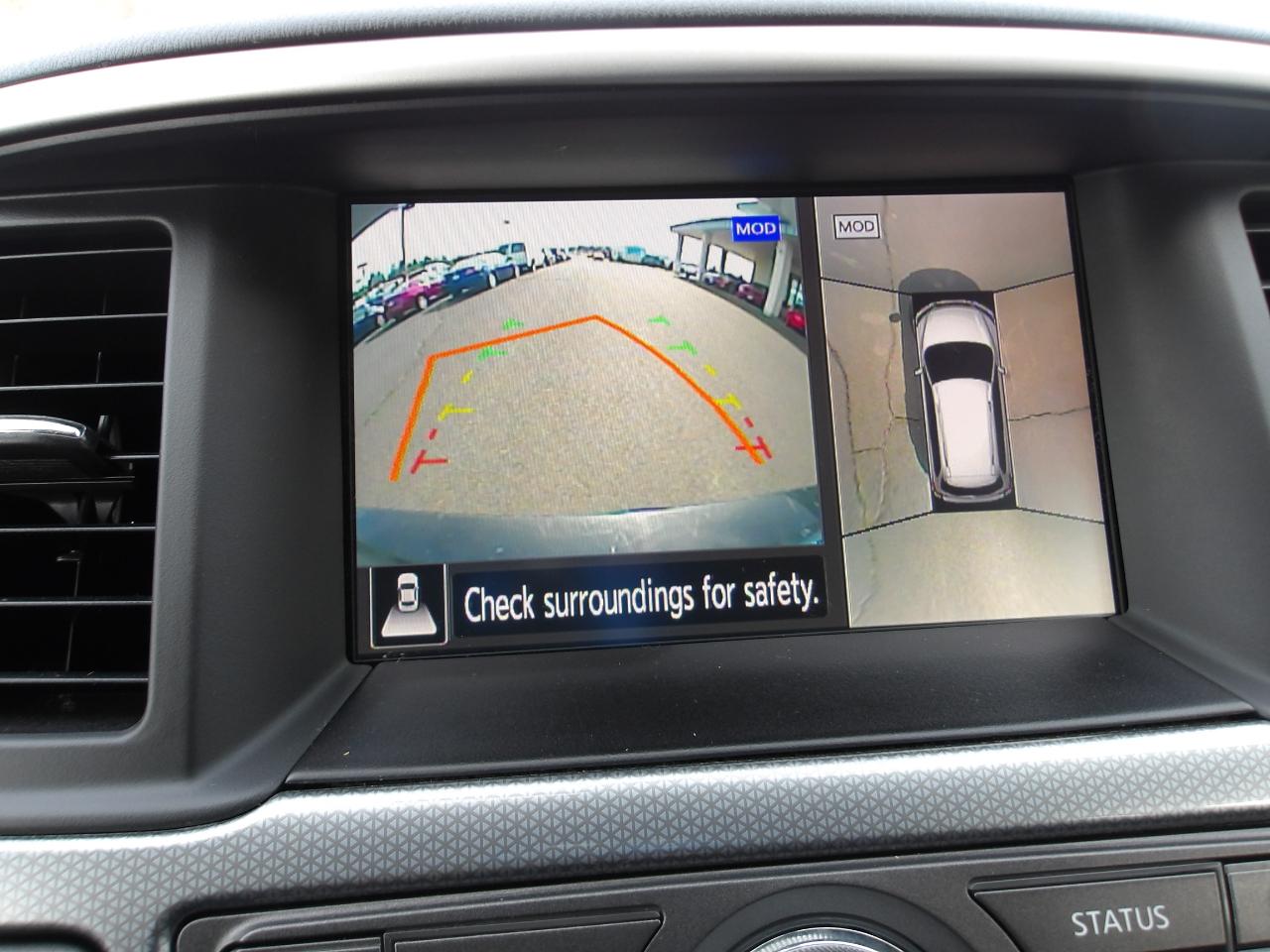 Inside, you'll find a luxurious interior with heated leather seats and a leather-wrapped steering wheel that exudes elegance and comfort. Stay connected with the NissanConnect Services Tracker System and enjoy the convenience of Intelligent Cruise Control during long drives. Safety is a top priority with features like Blind Spot Warning and Rear Cross Traffic Alert keeping you protected at all times. Plus, with the Around View Monitor Back-Up Camera system, parking has never been easier.