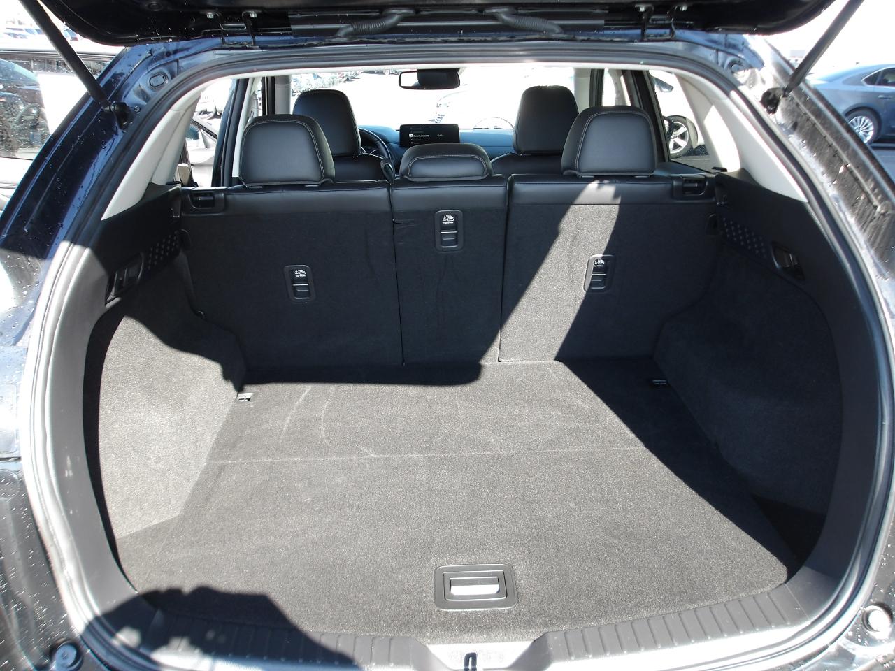 Inside, you'll find a comfortable and spacious cabin with thoughtful features like a HomeLink garage door transmitter, dual-zone automatic air conditioning, and Mazda Radar Cruise Control for a relaxing drive. The 40-20-40 folding split-bench seats provide versatility for both passengers and cargo.