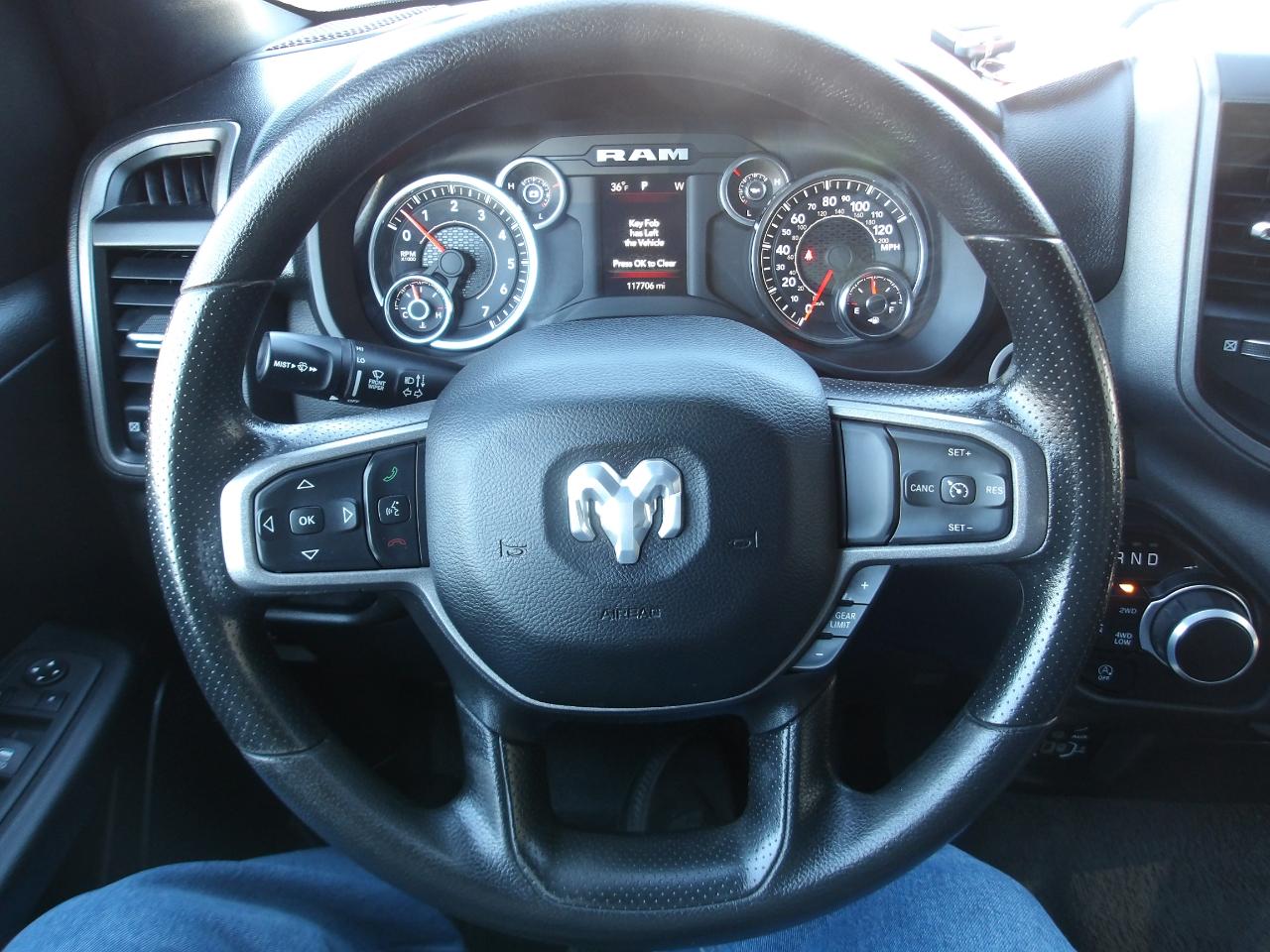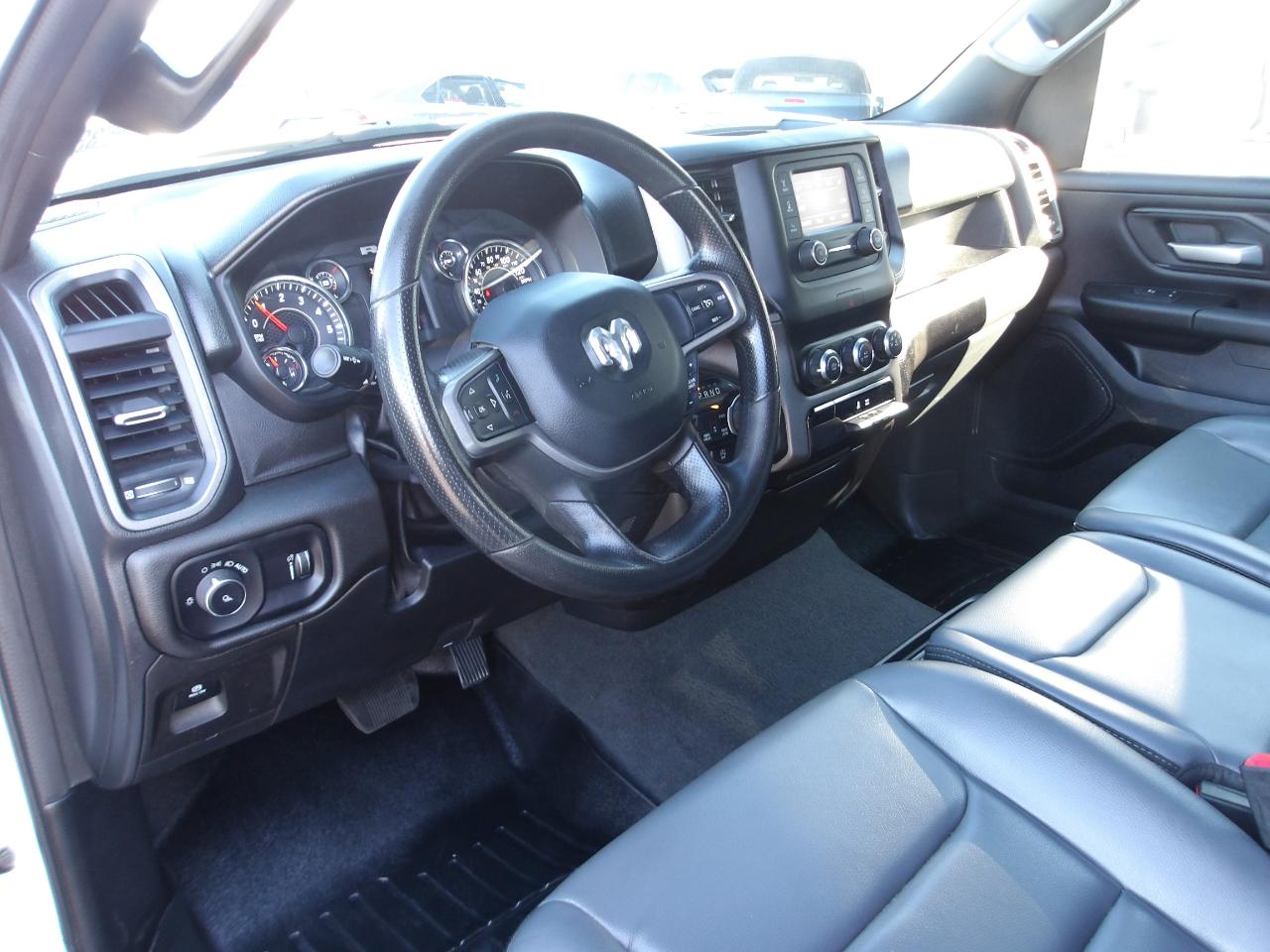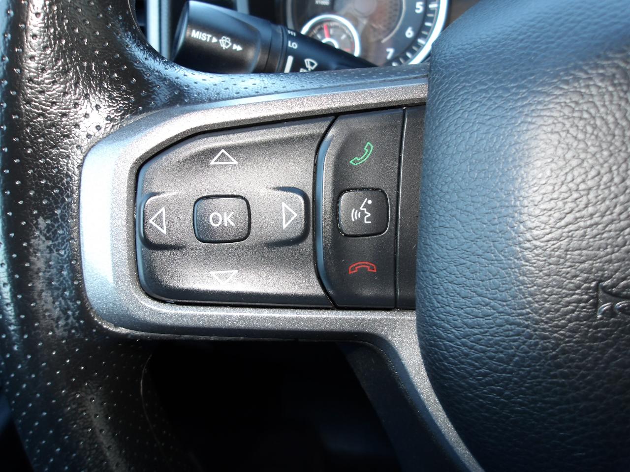 Comfort is key in this RAM 1500, with adjustable front seats and ample headrests for all passengers. Stay connected with the integrated GPS antenna and global telematics box module. Safety features like side curtain airbags and a rearview camera provide peace of mind on the road.