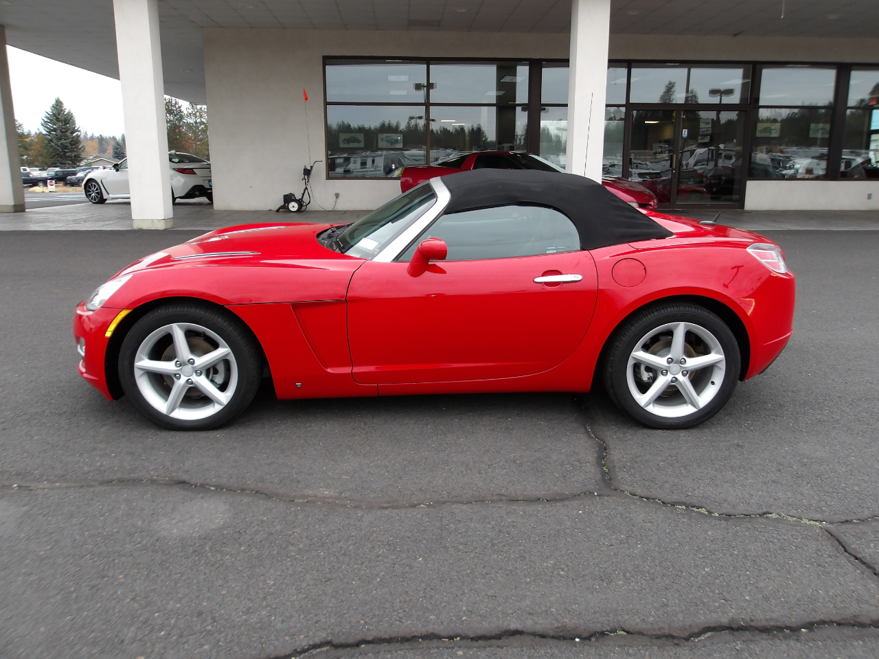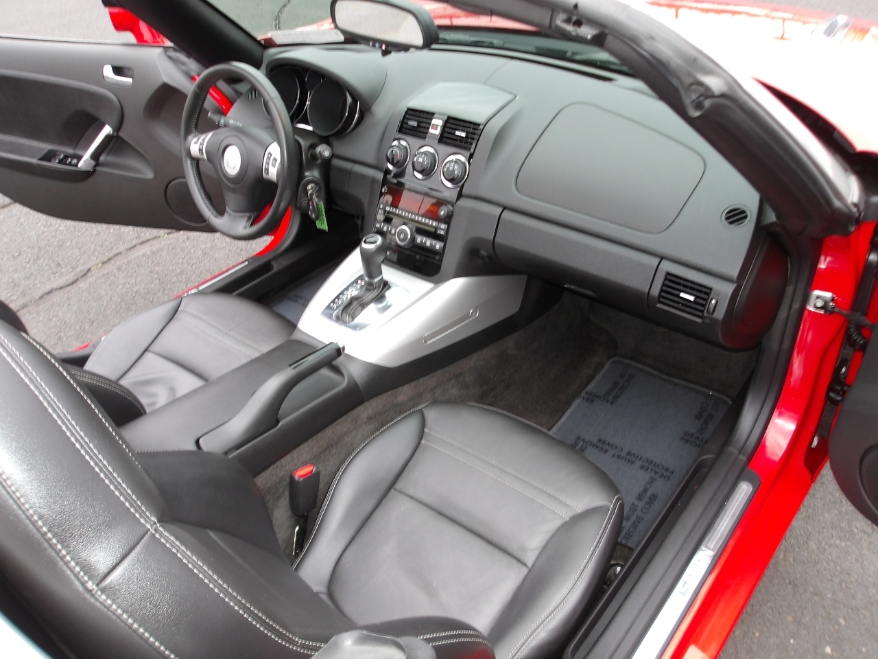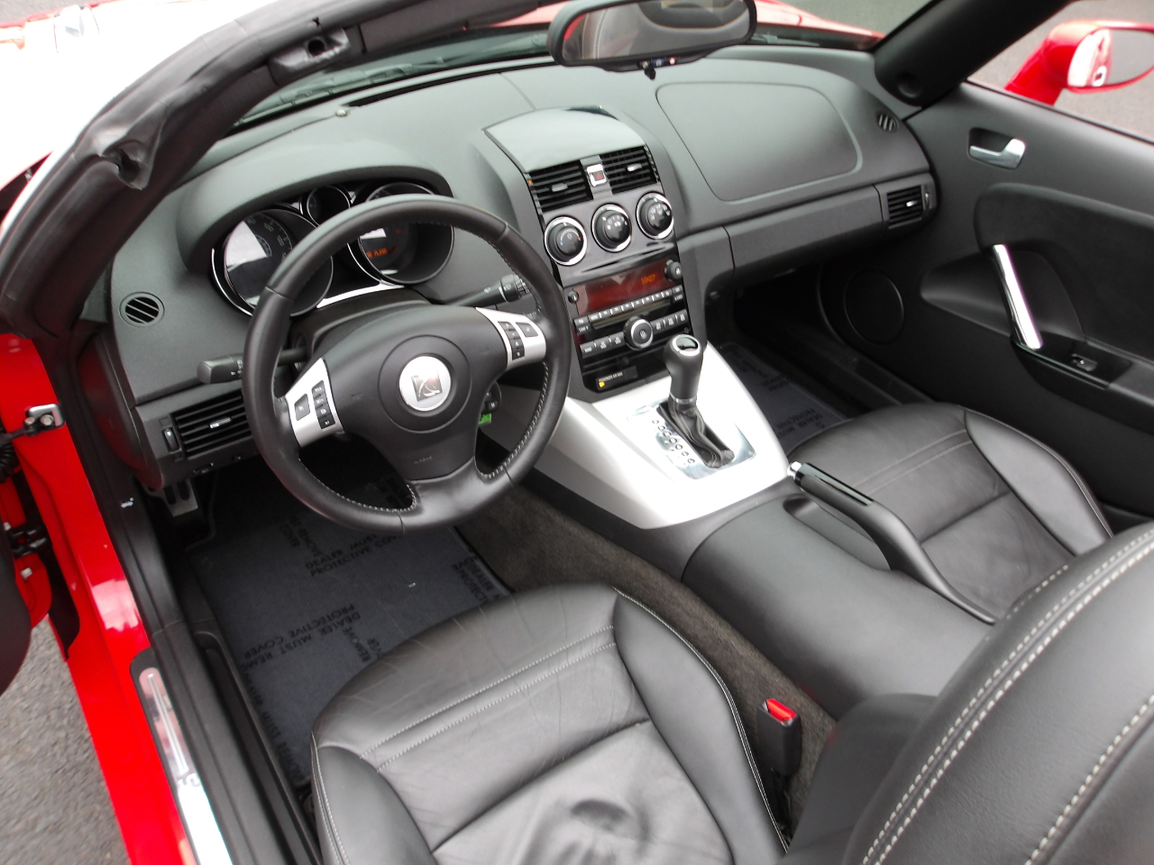 Step inside the cockpit and settle into the leather-wrapped shift knob as you adjust the 2-way power driver seat to your liking. Stay comfortable with the air conditioning and keep your belongings secure in the lockable glove box. With safety features like dual stage frontal impact airbags and pretensioners on the safety belts, you can drive with peace of mind. Buckle up and experience the joy of driving with this sleek and stylish Saturn Sky!