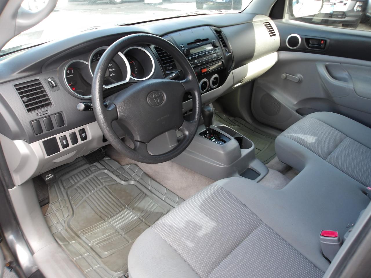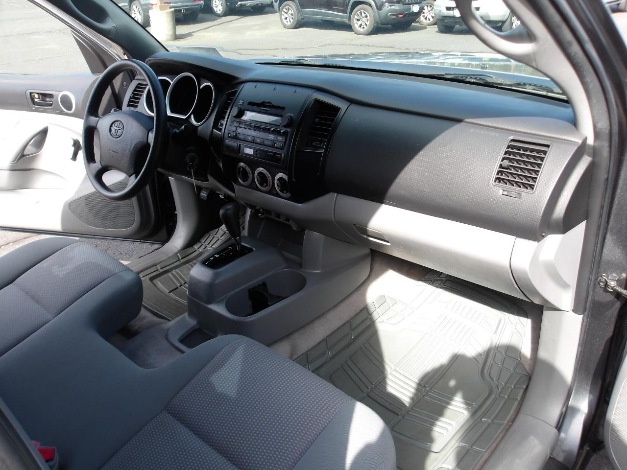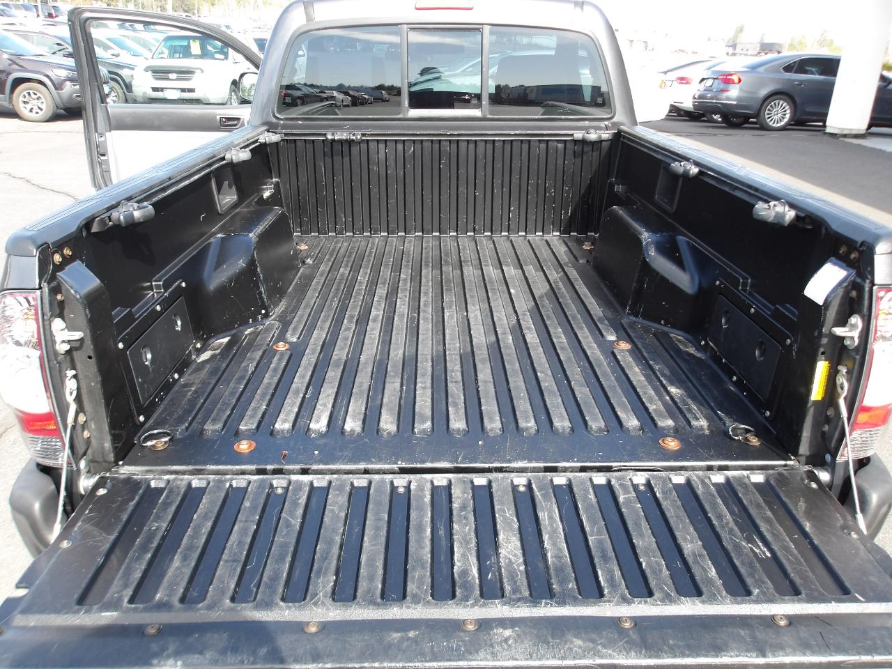 Whether you're cruising through the city streets or venturing off the beaten path, the Tacoma's rugged exterior with rear mudguards and deck rail system with adjustable tie-down cleats will keep your cargo secure. Inside, you'll find a spacious cabin with all the features you need for a comfortable ride, including an AM/FM stereo with CD/MP3 player, dual 12V aux power outlets, and sun visors with passenger vanity mirror.