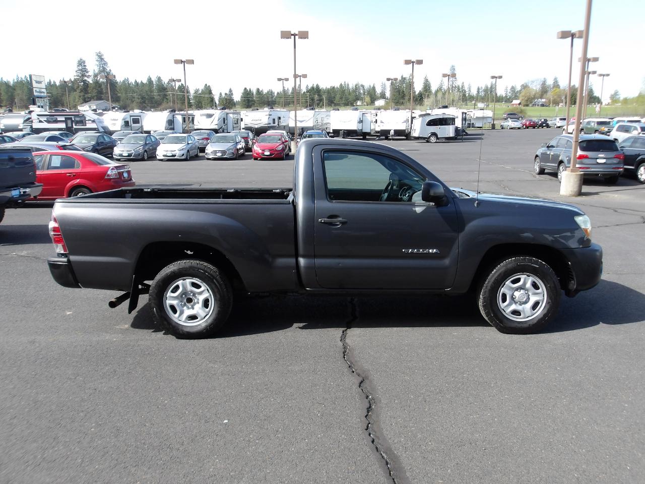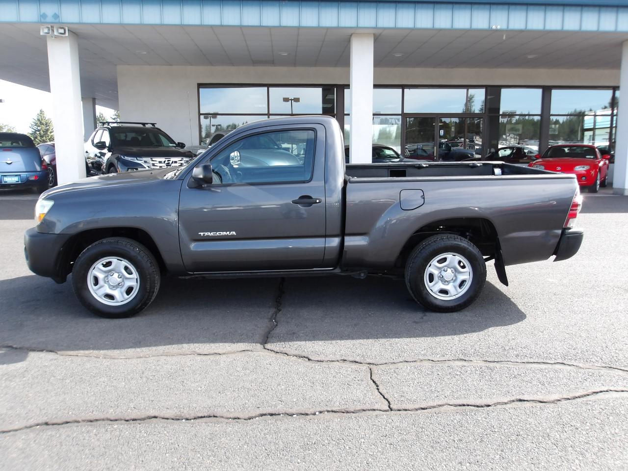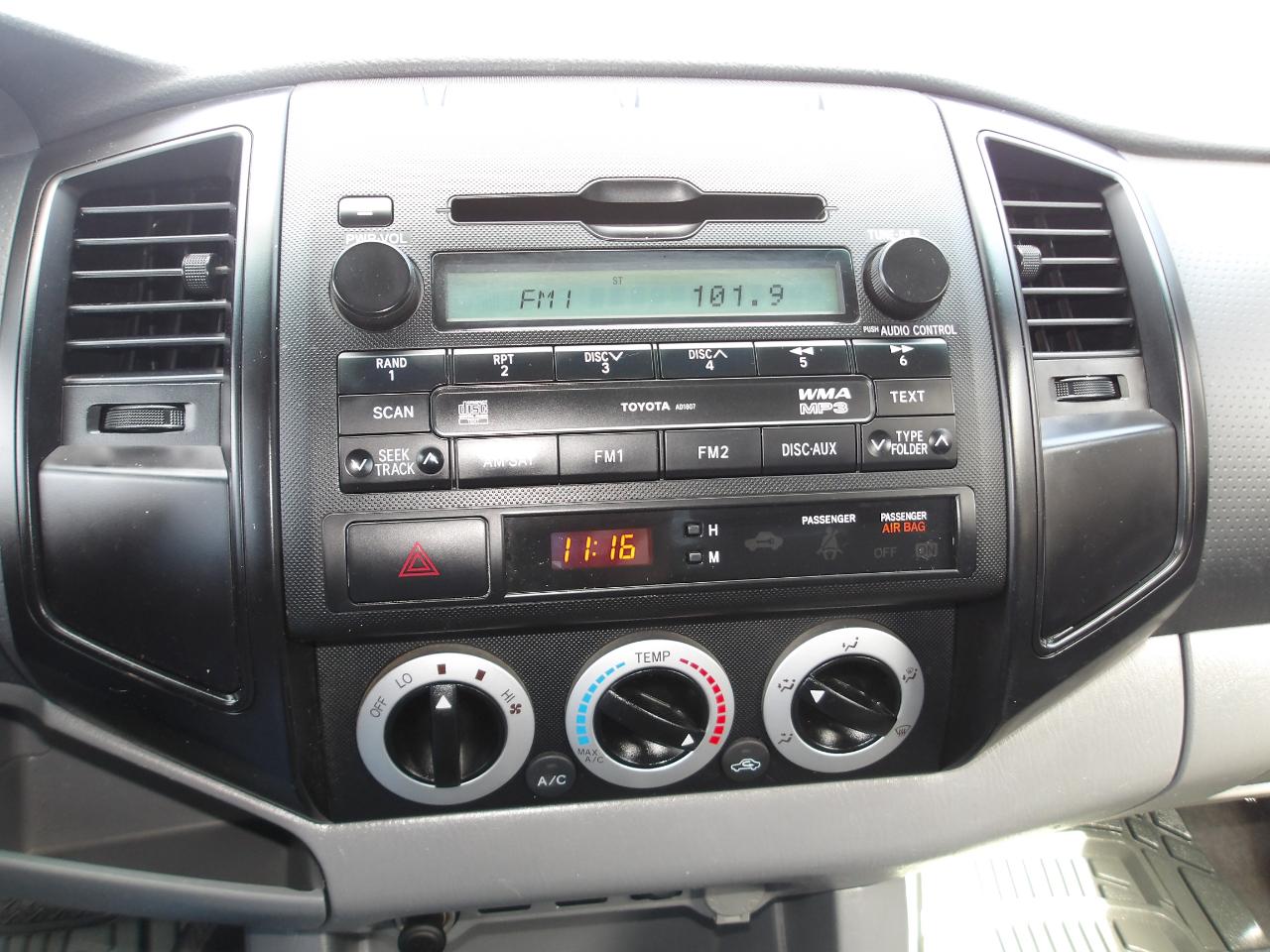 Whether you're cruising through the city streets or venturing off the beaten path, the Tacoma's rugged exterior with rear mudguards and deck rail system with adjustable tie-down cleats will keep your cargo secure. Inside, you'll find a spacious cabin with all the features you need for a comfortable ride, including an AM/FM stereo with CD/MP3 player, dual 12V aux power outlets, and sun visors with passenger vanity mirror.